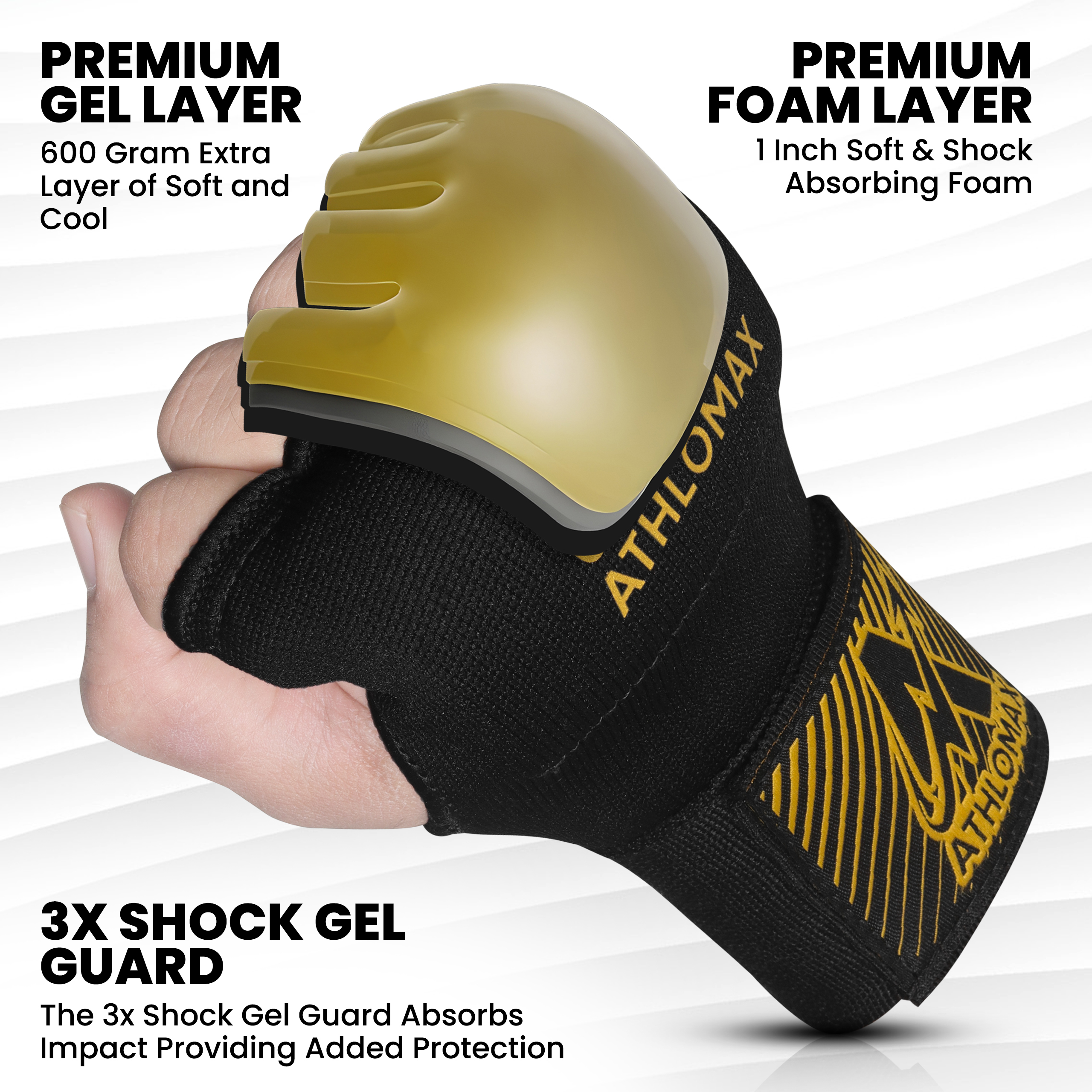 Protect your knuckles and enhance your training with AthloMax Gel Padded Inner Gloves, designed for boxing, MMA, and contact sports. These inner gloves provide superior impact absorption while keeping your hands comfortable and secure.