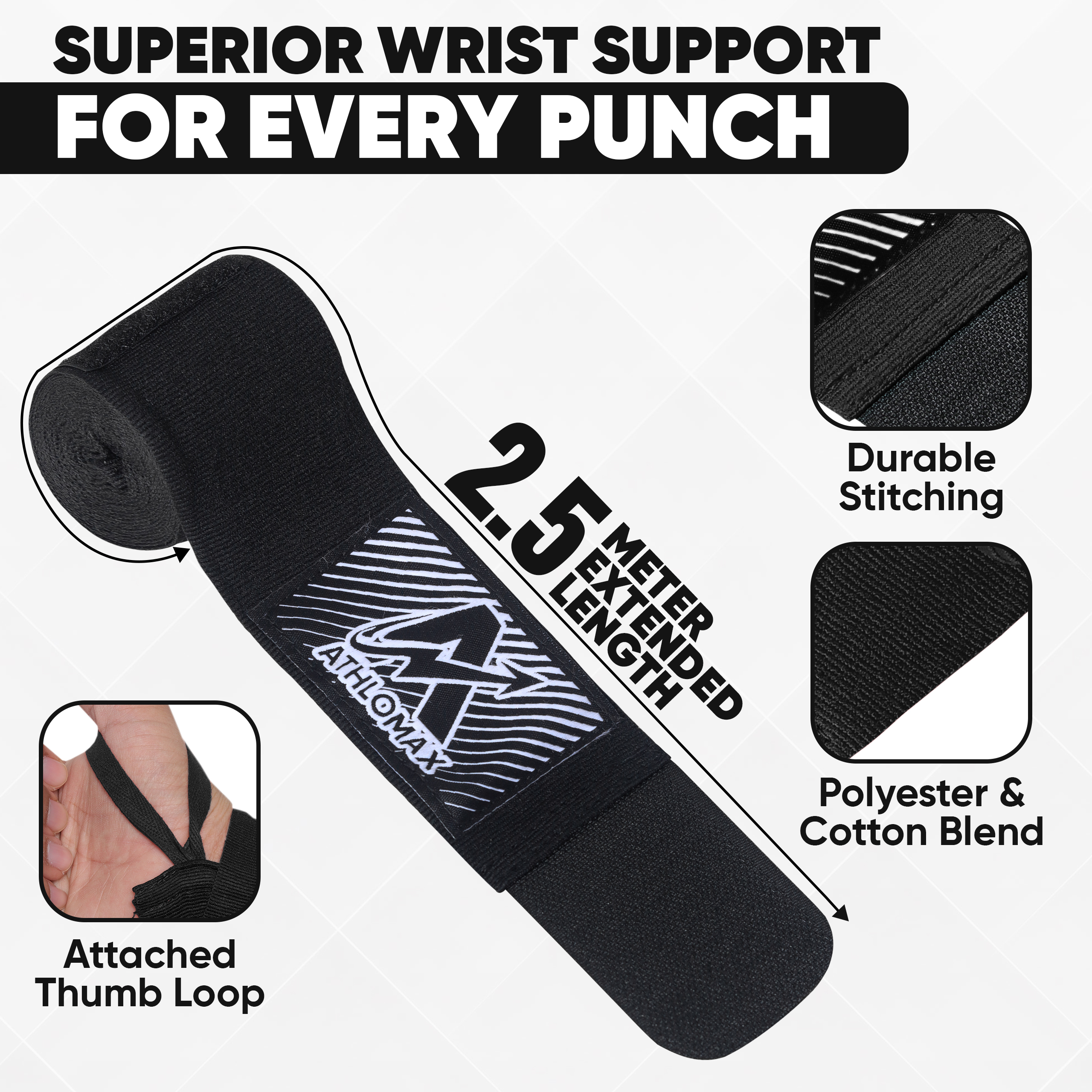 AthloMax Extra-Thick Boxing Hand Wraps (4.5m)